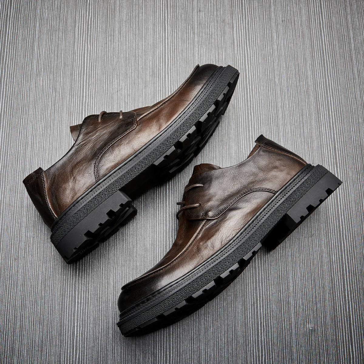 Men's Shoes Leather Round Head Breathable Retro British Casual Leather Shoes